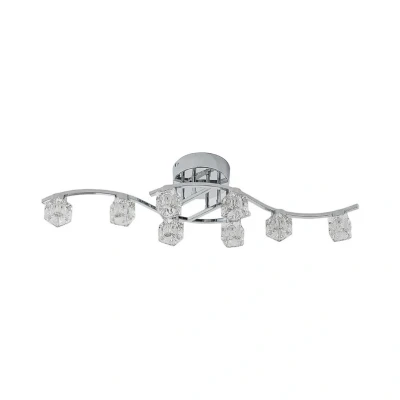The Yaro ceiling light features a sophisticated chrome frame adorned with eight beautiful shades made of thick glass. Each shade is designed in a geometric cube shape, allowing light to shine through all sides. This design not only maximizes light output but also creates stunning reflections, adding an eye-catching sparkle to your space. Whether installed in an entrance hall, living room, or dining area, this lamp serves as a captivating focal point for guests and residents alike.