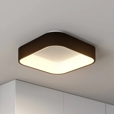 Modern LED ceiling light Aleksi in black and white with rounded corners The Aleksi LED ceiling lamp impresses with its elegant and square appearance. It is made of black iron and has a white plastic diffuser. Behind this sits its built-in LEDs, which are controllable in terms of their light colour (3,000 K and 4,000 K). You can switch between the light colours using a toggle switch located inside the light. This way, the Aleksi LED ceiling light can always provide the right light and the necessary ambience. Its simple design makes it a perfect fit for a living room or kitchen and it can be easily integrated into a wide range of interior styles. The rather simple colour scheme adapts easily to the rest of the furniture without outshining it.