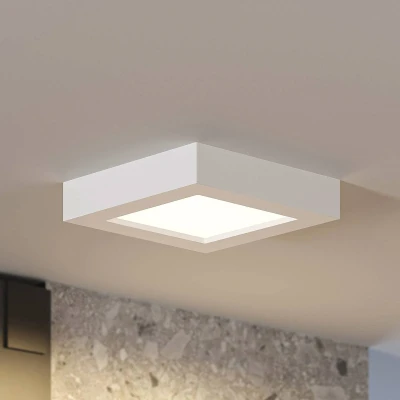 Square, white LED ceiling lamp Alette, IP44, DIP switch for presetting the light colour, dimmable Alette is a discreet lighting element for many environments that appears timeless with its white surface and angular Form and can be used both commercially and privately. The LED ceiling light has light sources that can be adjusted in their light colour before installation. There is a DIP switch on the luminaire housing for this purpose, which can be set to three positions, while the brightness can be adjusted using an external dimmer if required. This makes Alette a particularly function-orientated light source that can also be used in bathrooms thanks to its IP code IP44. The beam angle is relatively wide and if several lights are mounted at a certain distance from each other, larger rooms can also be adequately illuminated - IP44 - dimmable - DIP switch for presetting the light colour