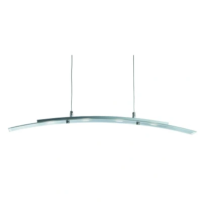 LED Ceiling Pendant Bar Light Satin Silver, Glass 4 Curved
