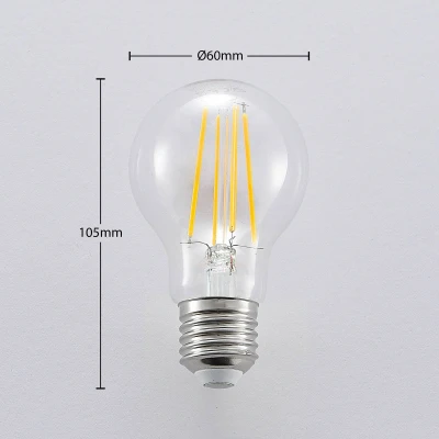Lights.coLED bulb E27 filament clear, warm white, dimmable This clear LED bulb with a filament look is a decorative replacement for 60W bulbs in many existing lights. The brightness of the lamp can be adjusted in three levels (100%, 55%, 20%) using the wall switch without the need for an additional dimmer.