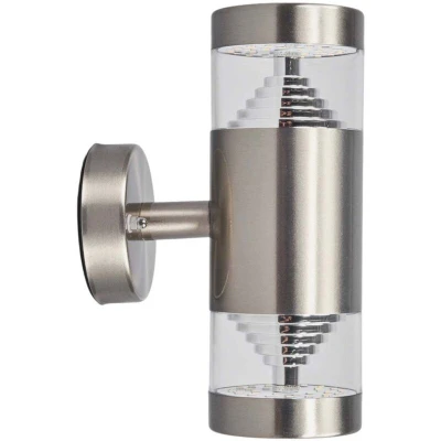 ManoManoGeneral description This LED Outdoor Wall Light 'Lanea' is crafted from high-quality stainless steel, featuring a modern industrial design that enhances the aesthetic of any outdoor space. It is perfect for illuminating areas such as terraces, gardens, balconies, and pathways, providing both style and functionality. Technical specifications Dimensions: 21 cm Material: Stainless Steel Protection Rating: IP44 (protected against water sprayed from all directions) Light Source: Warm white LED bulbs included Energy Efficiency: High Installation Ready to use with lightbulb included for easy assembly. Usage Ideal for outdoor use in various settings: terrace, garden, balcony, pond, gateway, and carport. Use warm LED bulbs for a cozy atmosphere or bright LED bulbs for enhanced security at night. Other information