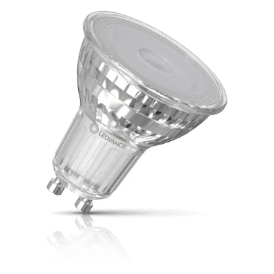 The all new 3.7W Performance Class PAR16 50 Dim retrofit LED GU10 spotlight light bulb from Ledvance delivers a 2700K Warm White accent beam that is comparable to that of a 50W Halogen GU10 light bulb.It is compatible with a wide range of dimmer switches and delivers huge energy savings without any compromise on brightness or quality. It lasts an incredible 25,000 hours and comes with a 5 Years warranty from Ledvance.It sports the same glass body you'd expect to see on a traditional halogen GU10, lending it a familiar aesthetic that's reminiscent of the very light bulbs it's been designed to replace. This results in an LED light bulb that manages to reduce your lighting bill by up to 93% when compared with traditional halogen spotlights, but doesn't look any different.This spotlight lamp is traditionally known as a PAR16 with a GU10 2-pin twist and lock (10mm apart) base.