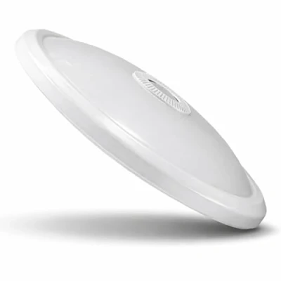 Durable LED ceiling light with integrated PIR Motion Detector and twilight sensor • Powerful fixed built-in LEDs with 800 lumens light intensity • With this ceiling light you will never forget to turn off the light when leaving the room. • Intelligent Light for hallways, staircases, cellars, garages and a lot of other places, very chic, elegant design with white housing is made of metal with a matte cover. Bulb – 24 x SMD chips in warm white (3000 K) • Beam angle 140° • Power – 12W, 800 lumens. Material – Metal Frame in white, matte cover made from PVC • Consumption – In use 12W, in standby 0.9W. Sensor – Integrated PIR Sensor • Detection range 360°, Light duration 10 sec – 3 min, Light sensitivity 3-2000 Lux, Installation height: 2 - 2.4 m. Measurements – Diameter 290 x 60 mm (L x H) • Protection class – IP20, for indoor use.