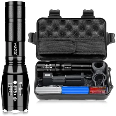 2000L SUPER BRIGHT TORCH WITH 5 MODES - Adopts an upgraded XML-L2 CREE LED bulb, easily lighting up a whole room and stably providing 10 times the brightness of ordinary Led torches. 5 functional modes: High, Medium, Low, Strobe, SOS. FAST USB RECHARGEABLE TORCH - This camping torch can be charged from a power bank, laptop, and more with the included USB battery charger. It saves energy and has a longer lifespan, with over 1000 charge cycles. ZOOMABLE & PORTABLE - The hand torch produces bright large-area floodlights or strongly focused spotlights within a beam distance of 200m. It is compact enough to easily fit in your pocket. Ideal as an LED flashlight for camping, night riding, hiking, fishing, dog walking, home use and more. IP65 WATER RESISTANT & VIRTUALLY INDESTRUCTIBLE - The tactical torch is made of military-grade aluminum alloy that can withstand rough handling—you can even run over it with a truck and it will still work! Our high powered torch is IP65 waterproof and shockproof, able to withstand a 5m drop or temporary submersion in water, making it suitable for use in rain, snow, or emergency situations. 2 Year Quality Guarantee: This full flashlight set makes a perfect gift for your family and friends. Trust in us- Giving you peace of mind with our Led rechargeable torch. If you have any questions about our flash light torch, we will reply within 12h., Weight: 0.8157103694 Pounds, Manufacturer: Beizkna