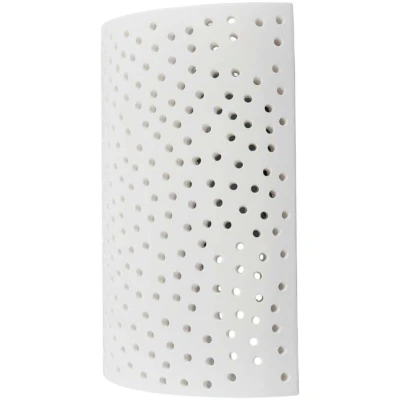 Lights.coPlaster wall lamp Jiru with decorative perforated pattern The lampshade of this plaster wall lamp is gently curved like a visor, allowing most of the light to escape upwards and downwards. However, because the plaster surface is not continuous, but is instead perforated with countless small holes that together create a pretty pattern, some light can also escape here, creating a beautiful sparkle of many points of light that artfully break through the shadow. The Jiru wall lamp is particularly suitable for additional or accent lighting because the focus is, of course, not on bright illumination, but on an atmospheric effect.