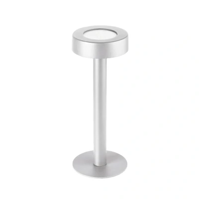 Orbit LED rechargeable table lamp with touch dimmer and USB charging cable The Orbit LED rechargeable table lamp in white can be placed indoors or outdoors and provides light without a power connection or annoying cables. Thanks to the integrated LED light source and the high IP code IP65, it is suitable for both indoor and outdoor use and can therefore be used on the terrace as well as in the living room, bedroom or hallway. It can be switched to three brightness levels using the touch switch (100 %, 50 % and 10 %). 6 hours at 100 % brightness, 12 hours at 50 % brightness and 60 hours at 10 % brightness. The battery is recharged within 6 hours using the USB charging cable supplied (without adapter for the socket).