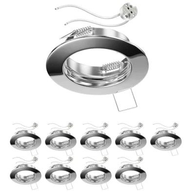 ledscom.de 10 Pieces Ceiling recessed Frame Fere, Round, Glossy Chrome (LED/halogen/MR16/50mm) incl. GU5.3 Socket