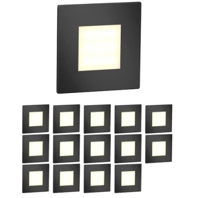 ledscom.de 15 LED Staircase Light/recessed Wall Light FEX for Indoors and Outdoors, Angular, Black, 85 x 85mm, Warm White