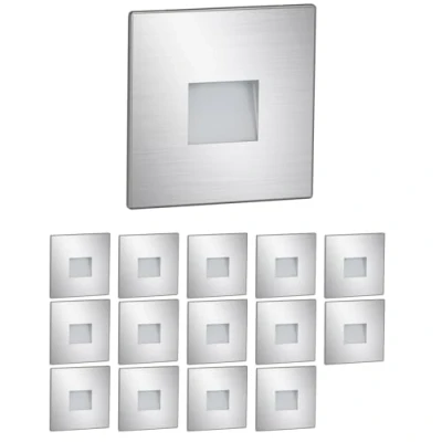 ledscom.de 15 LED Staircase Light/recessed Wall Light FOW for Indoor and Outdoor use, Downlight, Angular, Stainless Steel, 85 x 85mm, Warm White
