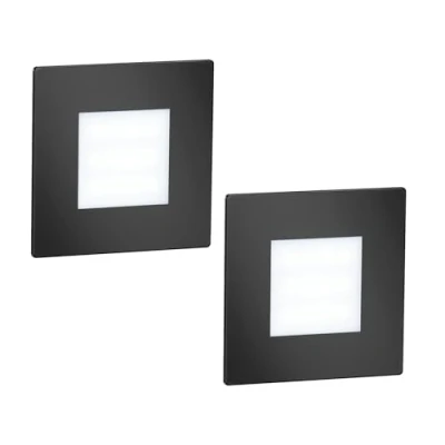 ledscom.de 2 LED Staircase Light/recessed Wall Light FEX for Indoors and Outdoors, Angular, Black, 85 x 85mm, Cool White