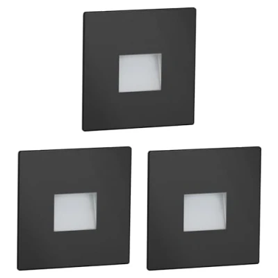 ledscom.de 3 LED Staircase Light/recessed Wall Light FOW for Indoors and Outdoors, Downlight, Angular, Black, 85 x 85mm, Warm White