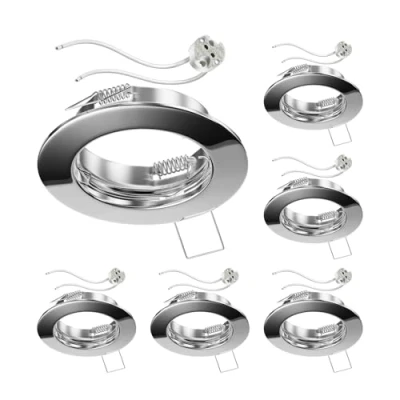 ledscom.de 6 pcs. recessed Ceiling Frame Fere, Round, Glossy Chrome (LED/halogen/MR16/50mm) incl. GU5.3 Socket