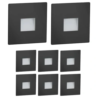 ledscom.de 8 LED Staircase Light/recessed Wall Light FOW for Indoors and Outdoors, Downlight, Angular, Black, 85 x 85mm, Warm White