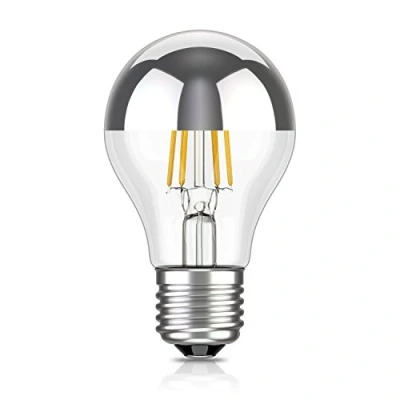 ledscom.de E27 LED Bulb, A60, Warm White (2700 K), 4,1 W, 461lm, Head Mirror (Silver), Bulb Shape, Filament, Edinson, Glass, LED, Light Base, Energy Saving lamp, Classic,