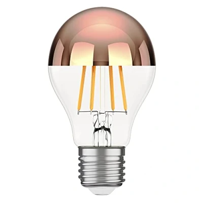 [Economical LED technology] - The LED lamp is the perfect choice if you are looking for a durable solution. Thanks to the intelligent LED technology, the light source is particularly energy-efficient and long-lasting (839 lm with a power consumption of only 7.5 W). [Aesthetic design] - Our E27 filament LED lamp meets the highest demands of modern living and impresses with the appearance of the familiar light bulb. [Glass dome with head mirror] - The front of the glass dome is mirrored with a thin rose gold layer. The so-called head mirror lamp prevents the frontal light emission, creating a glare-free indirect light characteristic. [Warm white light] - With a colour temperature of 2600 K, this LED lamp with E27 base produces a warm white light that creates a pleasant and cosy atmosphere. [A60 bulb] - diameter: 60 mm, length: 105 mm, Weight: 0.0661386786 Pounds, Manufacturer: LEDs Com GmbH