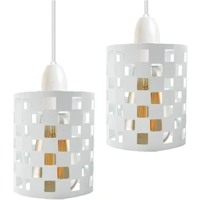 LEDSone 2 Pack of Vintage Metal Lamp Shade Industrial Wire Cage Light DIY Ceiling Pendant Lights for Dining Room Bedroom Loft Hallway (White Pack)