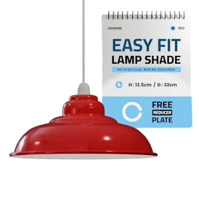 LEDSone 32CM Metal Ceiling Lamp Shade, Easy Fit Pendant Light for Bedroom, Hallway, Cafe, Restaurant, Modern Industrial Fixture, Stylish Home & Commercial Spaces. (Red)