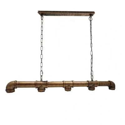 Benefit: Enhances any space with a striking industrial and vintage look, perfect for dining rooms, kitchen islands, bars, and living areas, providing a warm and inviting ambiance with its unique pipe design. Technical detail: Features 5 E27 bulb sockets compatible with LED or incandescent bulbs. Suspended by two adjustable metal chains that allow customizable height and provide balanced weight distribution for stability. Material: Constructed from quality corrosion-resistant metal pipes and fittings, this fixture offers long-lasting durability and reliable performance, delivering years of stylish and dependable illumination. Installation: Easy to install with included mounting hardware and clear instructions; suitable for standard ceiling junction boxes and adjustable chain length for flexible placement and height adjustment. Safety or eco-friendly: Designed with safety in mind, this fixture supports energy-saving LED bulbs that reduce power use and heat output, providing bright, efficient lighting for an eco-friendly and safe environment. Package include: Package contains 1 x 5 way pipe pendant light fixture, 2 x adjustable metal chains, 1 x ceiling canopy, installation hardware, and user manual, bulbs not included.