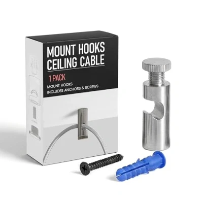 DESIGN: This minimalist ceiling cable mount hook offers a clean and elegant look that complements any interior décor. Its simple design blends seamlessly without distracting from your space. MATERIAL: Crafted from durable metal, this hook is built for long-lasting performance. It supports pendant light cables securely without bending, warping, or losing strength over time. DIMENSIONS: Features an Easy Hook (40mm x 15mm) with a 7mm opening, 25mm inner height, and 8mm top gap. Includes a sturdy threaded adapter (16mm x 15mm) for secure and stable mounting. EAST TO INSTALL: Designed for straightforward installation, it includes screws for ceiling or wall mounting. The setup is quick, hassle-free, and user-friendly. WIDE APPLICATION: Suitable for pendant light fixtures mounted on ceilings or walls. It allows easy cable positioning and adjustments, making maintenance and upgrades simple and efficient—ideal as a pendant light hook. PACKAGE INCLUDED: 1 x Hook and 1 x Mounting Screw Accessory, providing everything needed for easy installation and smooth integration with various pendant lighting systems., Manufacturer: LEDSONE