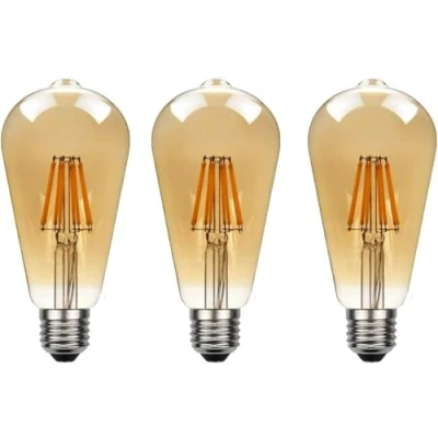 LEDSone Dimmable Edison LED Bulb ST64, 8W 600LM Vintage Filament Light E27 Screw Lamp 2200K Warm White, 3 Pack Amber