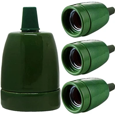 LEDSone E27 Adapter Lamp Holder, 4PCS Light Bulb Holder Solid Screw Socket Base Porcelain Ceramic with Cord Grips (Green)