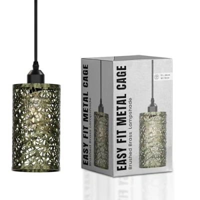 LEDSone Industrial Style Metal cage Easy Fit Wire Lampshade for Indoor Pendant Lights Shade Dining Room Bedroom Loft Hallway (Brushed Brass 4)