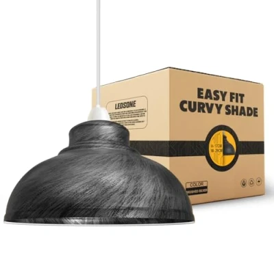 Design :The Easy Fit Curved Ceiling Pendant Light shade blends industrial and modern design elements, offering a delightful and stylish touch to any space in the structure of your residence. Material: This Lampshade is made of quality metal, this lampshade features smooth, rust-free surfaces for long-lasting performance, making it an ideal addition to enhance your home's decor. Dimensions :This lampshade features a height of 17 cm and a diameter of 29 cm, with an 4cm open hole for easy access to change light bulbs, offering both convenience and style for your space. Easy Fit : The lampshade is designed for easy installation and can be easily attached to any standard pendant light fixture, offering convenience and versatility for your lighting setup. Wide Application: Perfect for use in Living room, coffee shops, bars, desks, restaurants, terraces, offices, studios, flats, hotels, and homes, adding style and charm to any setting. Package Includes: The package includes 1 x Lampshade and 1 x reducer plate for easy installation. No extra accessories or tools are needed, ensuring a hassle-free setup.