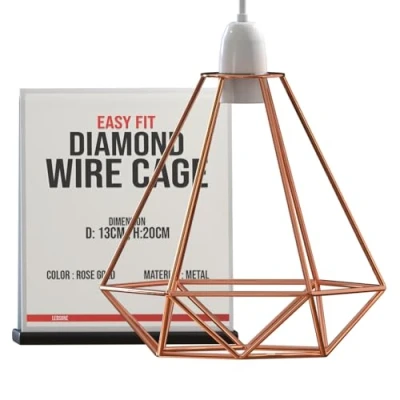 About Design: The modern geometric diamond wire cage design rose gold color adds a contemporary and stylish look, enhancing the lighting effect while protecting the bulb. Perfect for creating a bright and elegant atmosphere. About Material: Crafted from durable metal, the lampshade is rust-resistant, temperature-resistant, and built to last. The sturdy material ensures safety while maintaining its aesthetic appeal over time. Dimensions: The wire cage lamp shade measures 13cm in width and 20cm in height with an open hole width of 4cm. It weighs just 350g, making it lightweight and easy to handle during installation. Installations: The lampshade is simple to install without wiring and fits seamlessly into standard ceiling light sockets. It includes a reducer plate, allowing for an easy and quick setup with no additional tools required. Applications: Perfect for various spaces, including living rooms, kitchens, bedrooms, offices, cafes, restaurants, and more. Its modern design makes it ideal for both residential and commercial environments. Package Includes: The package includes 1 x wire cage lampshade and 1 x reducer plate for easy installation. No extra accessories or tools are needed, ensuring a hassle-free setup., Weight: 0.771617917 pounds, Manufacturer: LEDSone