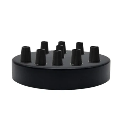 LEDSone Multi Out Black Ceiling Rose Perfect for Fabric Flex Cable, 120mm Metal Light Fitting Plate with Accessories and Wall Lamp. (9 Outlet))