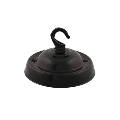 LEDSone Vintage Single Out Ceiling Rose Hook Plate for Light Fitting Chandelier,105mm Metal Antique Side with Accessories (Matt Black)