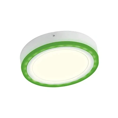 LED wall and ceiling luminaire with remote control for white light and RGB color adjustment Bright panel, uniformly lit with warm white light Bezel illumiation with constant or automatically changing color Comfortable and intuitive remote control 2 in 1 LED luminaire for white and colored light Newest and sustainable LED technology; no regular bulb included