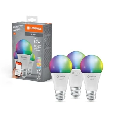 LEDVANCE Smart LED lamp with WiFi Technology, E27 base matt Optics,RGBW Colours Changeable, Light Colour Changeable (2700K 6500K), 806 Lumen, 60W Replacement, dimmable, 3 Pack