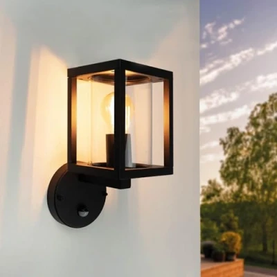 Ledvion Wall Lamp with Sensor Black, IP44, E27, Black Outdoor,
