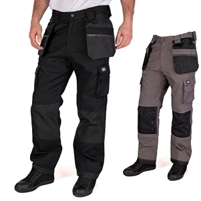 Lee Cooper LCPNT210 Mens Premium Multi & Holster Pocket Kneepad Work Safety Pants Cargo Trousers, Black/Black, Size 36 Short
