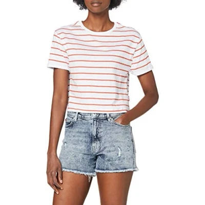 Lee Cooper Women's Printed Tee Gestreift T Shirt, Striped White, M