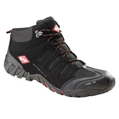 Lee Cooper Workwear Mens Work Safety Trainer Mid Cut Steel Toe Cap Composite Anti Static Slip Midsole Boot S1P SRA, Black, 9 UK/43 EU