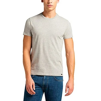Lee Men's Twin Pack Crew T Shirts, GREYMELE NAVY, M