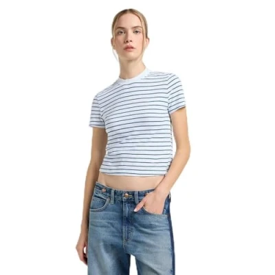 Lee Women's Cropped Tee T Shirt, White Indigo Stripe, XL