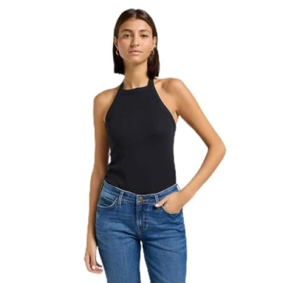 Lee Women's Open Back Halter Top T Shirt, Unionall Black, S