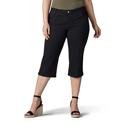 Lee Women's Plus Size Relaxed fit Denim Capri Pant Jeans, Black, 16 US