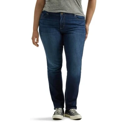 REGULAR FIT. With a regular fit and a mid rise, these straight leg jeans sit comfortably on the hips and have a skimming fit through the seat and thigh. Designed for everyday comfort, these jeans have a straight-leg cut, great for pairing with your favorite pair of sneakers or flats. WARDROBE CLASSIC. A great pair of straight leg jeans is a staple for any woman's wardrobe. With a flattering silhouette for any shape, this style pairs perfectly with your favorite tee. SIGNATURE LOOK. These jeans feature the seven iconic Lee design elements: S-Curve pocket stitching, logo patch, X-stitched tacks, logo button and rivet, hip pocket label and Spade pocket. SPECIFICATIONS. Zipper fly with button closure, leg opening: Women's Plus Size 16", inseam: Women's Plus Size 30". Product measurements were taken using size 20W Medium. Please note that measurements may vary by size. International products have separate terms, are sold from abroad and may differ from local products, including fit, age ratings, and language of product, labeling or instructions.