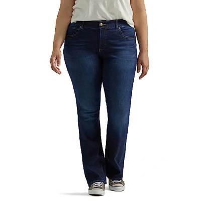 REGULAR FIT. With these regular-fit jeans, you never have to compromise on comfort for a flattering fit. The bootcut provides the perfect amount of flare to accentuate your favorite pair of boots or heels. ELASTIC WAISTBAND. Featuring a flexible, elastic waistband that helps prevent pinching or digging, these mid-rise jeans are comfortable enough for a long day of sitting. STRETCH DENIM. Strut with confidence in these bootcut jeans. Made from authentic stretch denim, they move with you for all-day comfort. A LIFETIME OF QUALITY. For over 100 years, Lee has produced quality apparel with durability and long-lasting construction in mind. Lee is committed to designing clothing that conforms to your body, allowing you to move through life freely. LEGENDARY DETAILS. These women's jeans are finished with our iconic logo hardware, patch and spade pockets that make Lee jeans unique. Inseam: Plus Petite 30", Plus 32", Plus Long 34". Bottom Leg Opening: 21.125". Rise: 11"