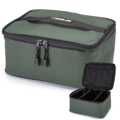 Two dividers This is the ideal storage solution for bait and larger accessories keep tackle neat and tidy with the two dividers provided ideal for bait tubs or larger tackle items such as marker floats and spods designed to store neatly inside the rogue carryalls and rockall The same dimensions as the cool bag Internal mesh pocket