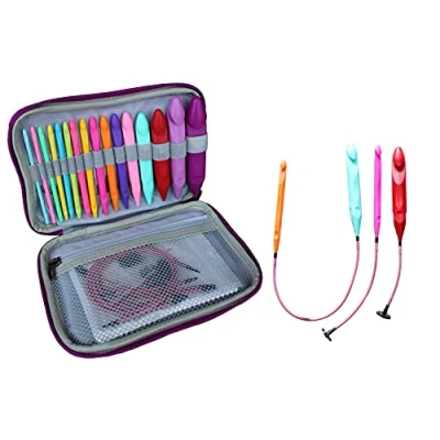 LEEYIEN Interchangeable Crochet Hooks of Upgraded Version 2021 with Durable & Brilliant Purple Storage Bag. A Real Cost-effective Interchangeable Crochet Hooks Set with Complete Accessories. A big surprise! Wonderful & Special colorways. Amazing gift for friends and great stuff for personal use. LEEYIEN Interchangeable Crochet Hooks set is unique and ideal for small or bulky projects.