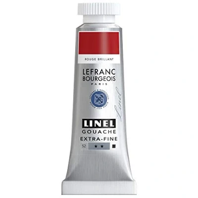 Lefranc & Bourgeois 301173 Linel Gouache Extra Fine and Smooth Watercolours with Maximum Colour Intensity, Luminosity for Streak Free Application, 14 ml Tube Brilliant Red