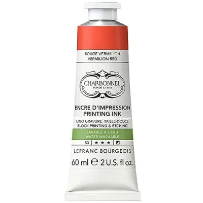 Lefranc Bourgeois 301492 CharbonNEL, water washable copper printing ink with excellent light fastness, vegan, 100% solvent free, 60 ml tube, verminion red