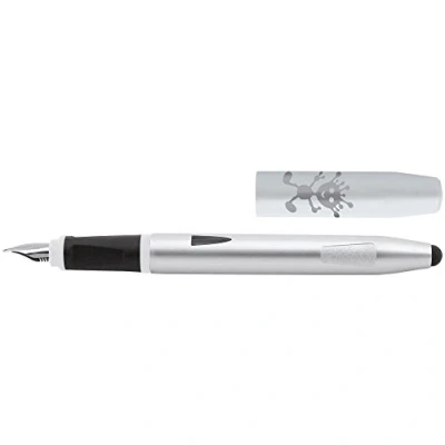 innovative fountain pen with left-handed nib especially made for beginners including stylus tip for use on smartphones or tablet PCs refillable with standard ink cartridges or usable with converter and ink especially made for beginners