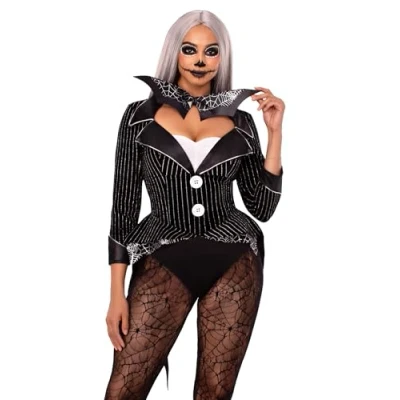 Soft velvet bodysuit with lurex stripes Bat-wing collar adds playful touch Comfortable and sleek fit Ideal for Halloween or festive events GROUP COSTUMES: Pair this baddie tuxedo look with a classic Sally costume or spooky Oogie Boogie costume for hauntingly fun couples costumes, or complete your Halloween Town takeover with other movie character costumes for a stylish, spooky group costume, Manufacturer: Leg Avenue