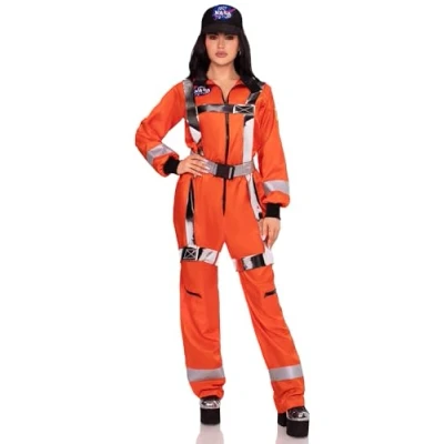 Leg Avenue 3 PC Cosmic Astronaut Costume, Includes Zip Up Jumpsuit with Pockets and Reflective Trim, Metallic Body Harness, Hat, Small, ORANGE